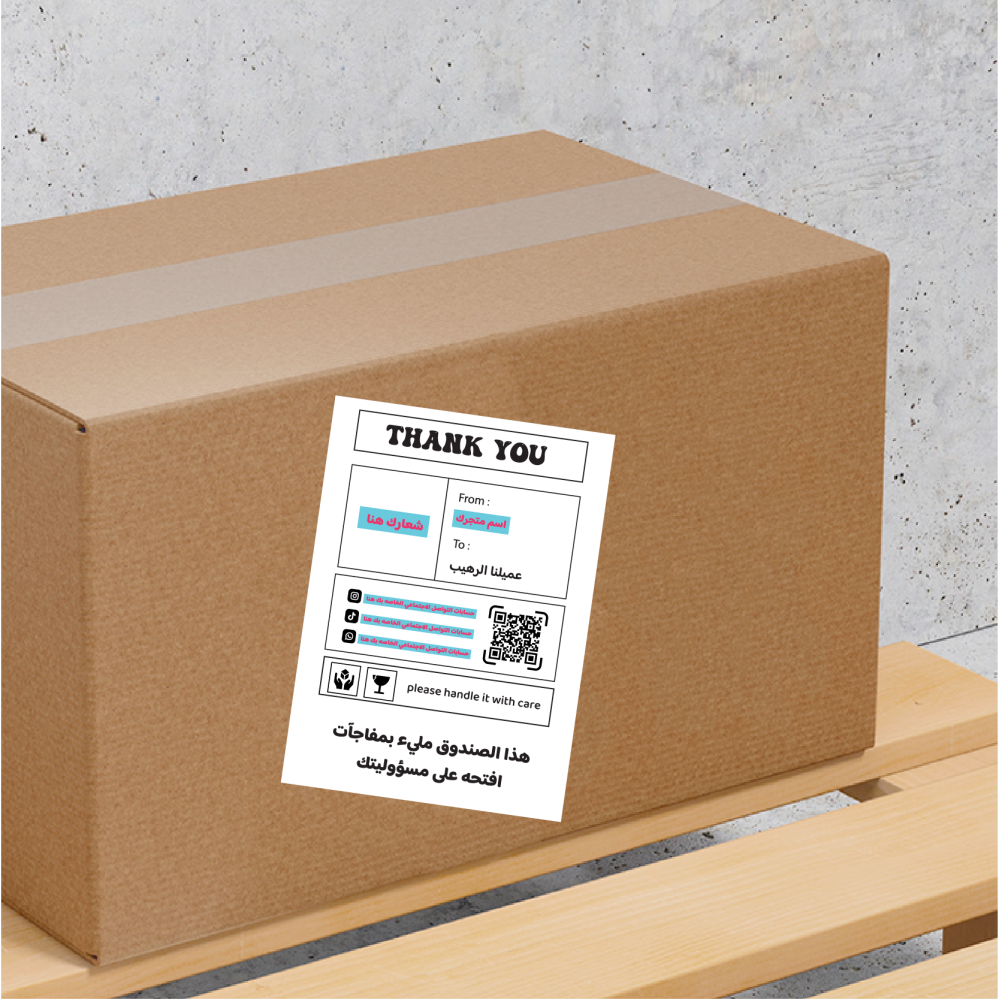 - ستيكر شحن مع امكانية اضافه شعارك وبيانات التواصل الاجتماعي