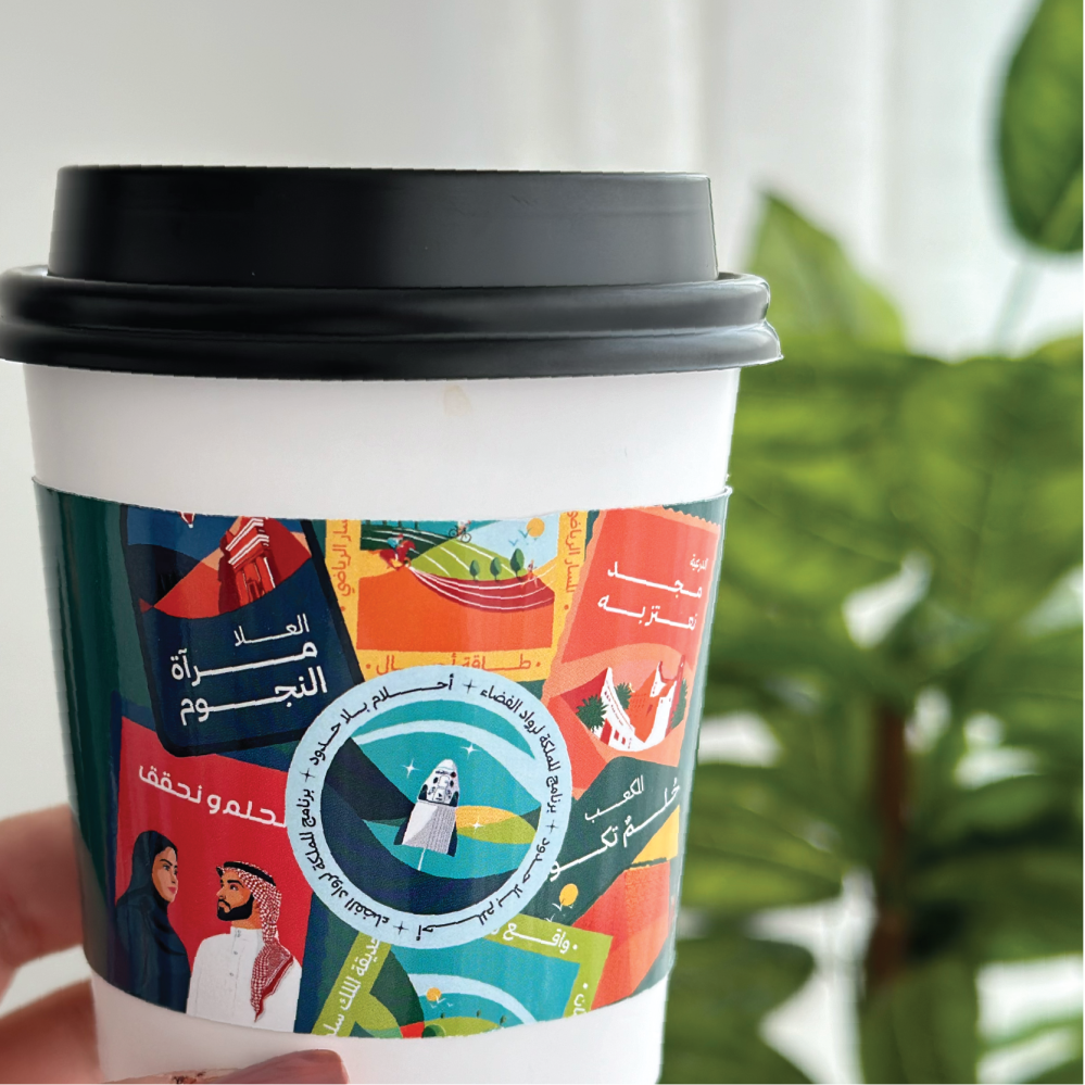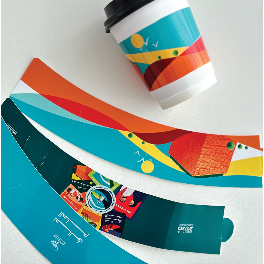 - يمكن استخدامه فوق الاكواب البلاستيك او الورقية لتوضيح هويتك .