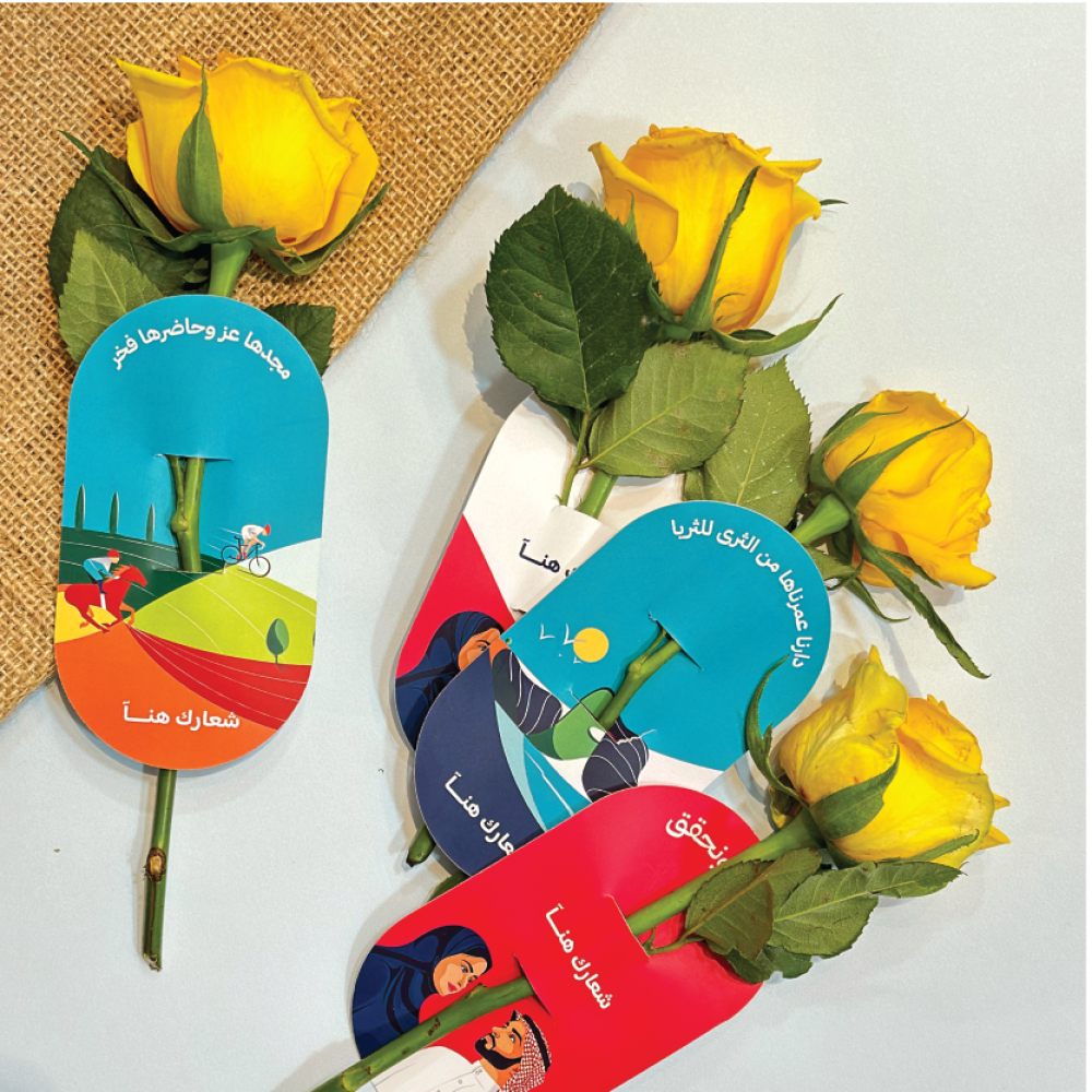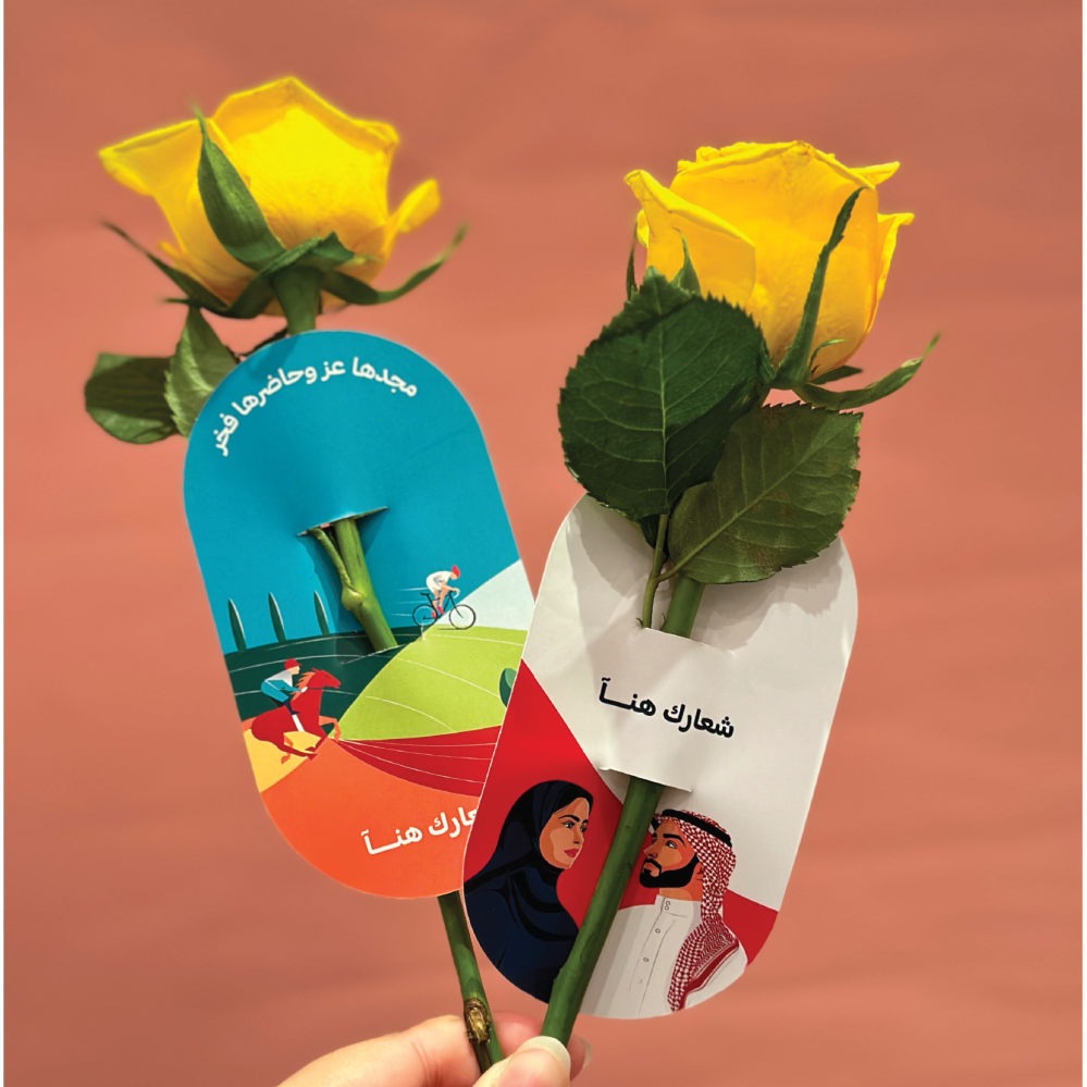 - تاق شكر مع اهداء للورد بتصاميم اليوم الوطني مختلفة و اضافة شعارك الخاص